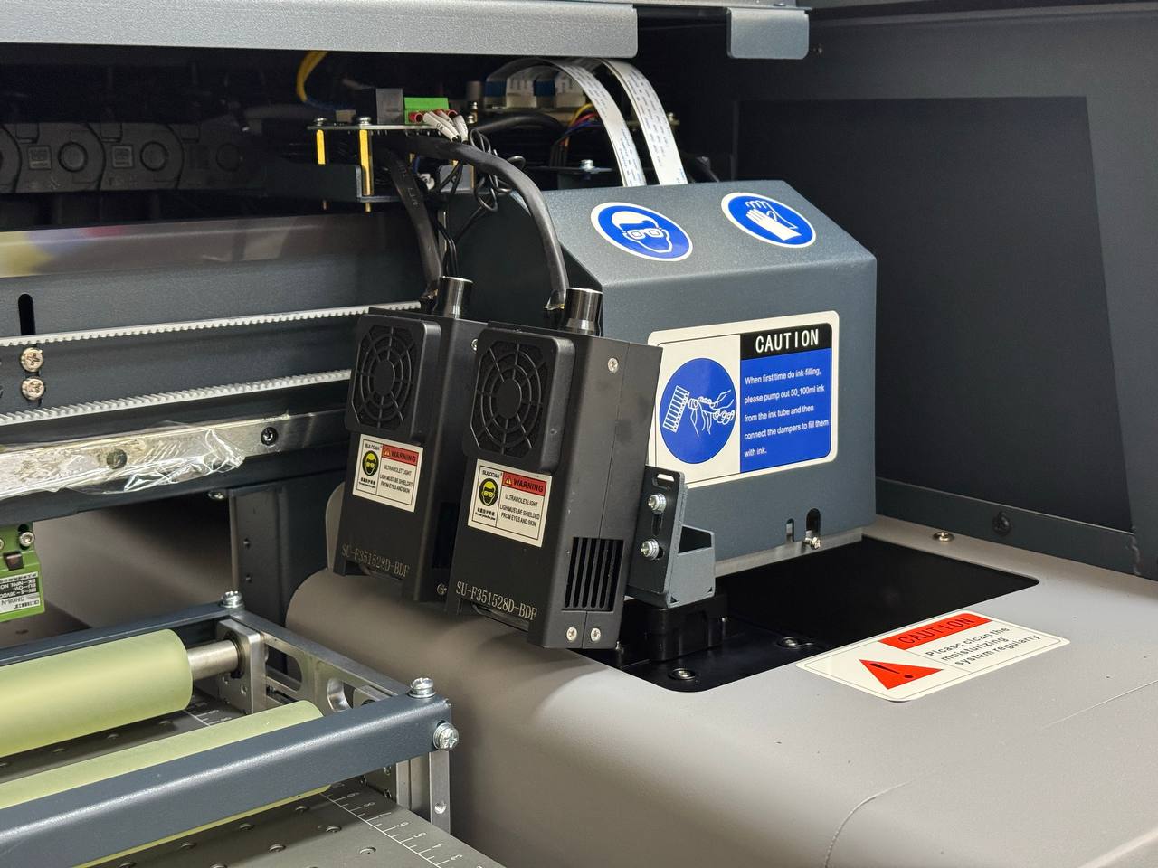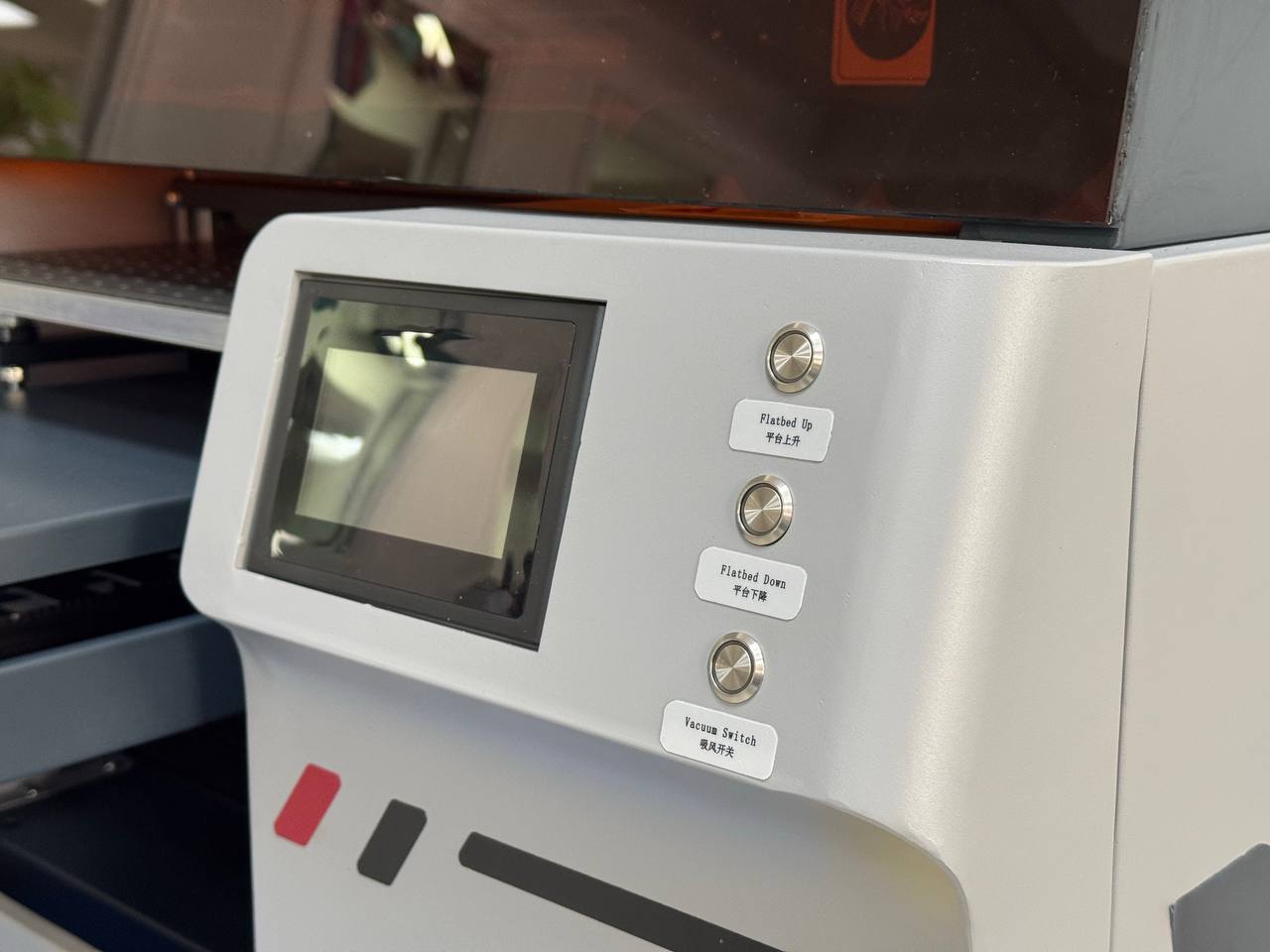 - Вакуумная фиксация материала, исключающая сдвиги и перекосы во время печати