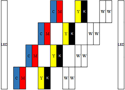 Вариант используется если необходима печать в один проход белого цвета, изображения и лака.