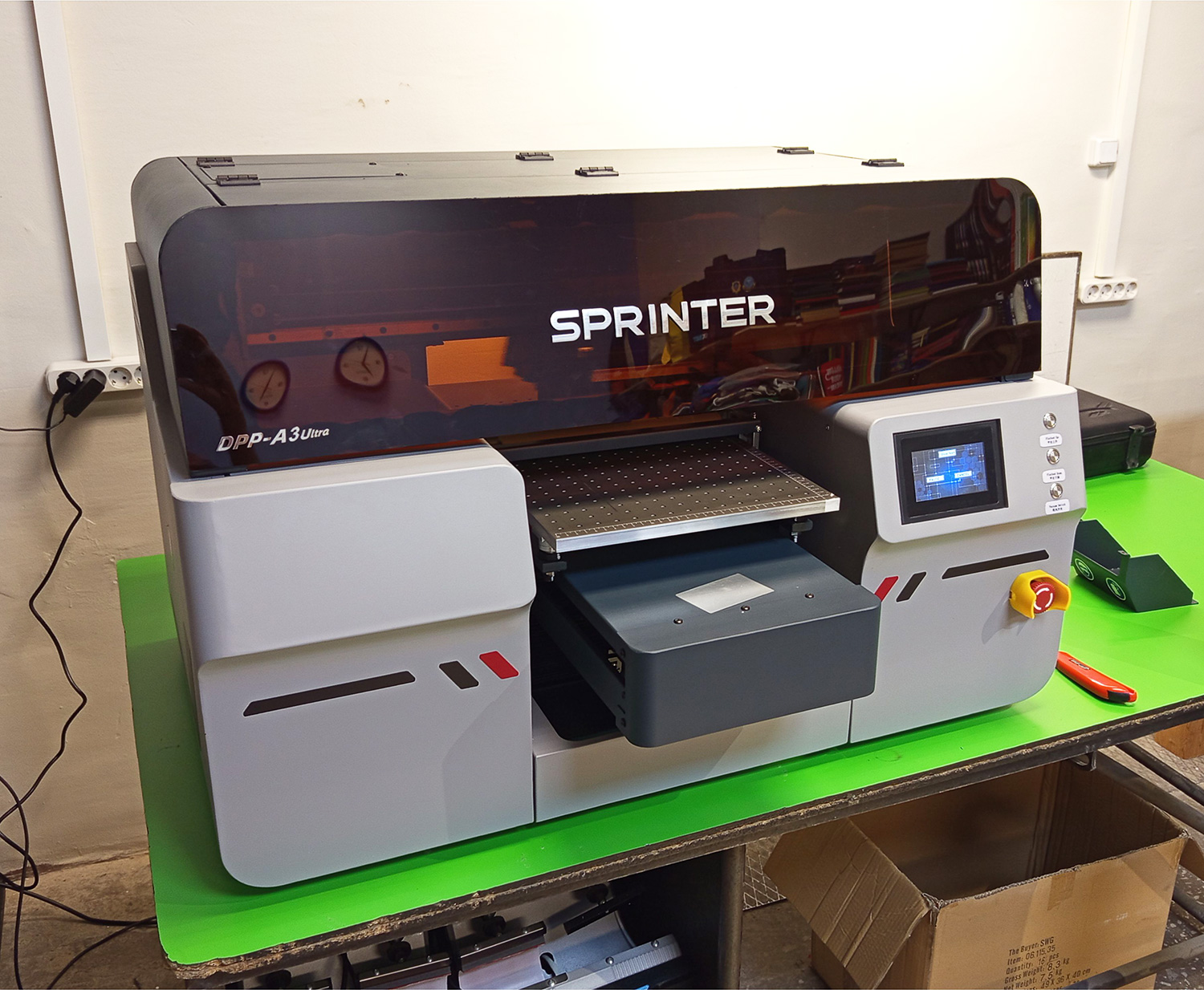 Sprinter DPP A3 Ultra — это обновлённая версия популярного принтера DPP A3E, который зарекомендовал себя как настоящий бестселлер. Компактный по размеру, но мощный по возможностям, он сочетает в себе всё необходимое для малого и среднего производства, а также для компаний, которые хотят быстро и эффективно запускать новые направления.